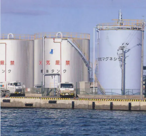 タンカーにより運ばれてきた重油・水酸化マグネシウム等は、ここで一時的に備蓄され、三洋製紙へと運ばれて行きます。