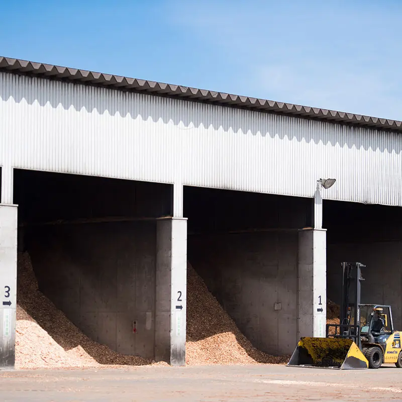 それまでは、製紙会社も含め、山陰地域では針葉樹のC材を原料とした木質チップの需要が松のチップを除くとほとんどありませんでした。そのため、針葉樹のC材の行き場が地元にはなく、わざわざ県外の製紙会社まで運んでいました。しかし、三洋製紙のバイオマスボイラーが稼働したことで、針葉樹のC材の地元での活用場所が確保でき、輸送費が削減できるなど近い場所へ出荷できるメリットは大きく、取引量が次第に増えていった形です。こういった経緯で八頭事業所では燃料用の木質チップ製造に特化した事業展開ができています。これからも三洋製紙との取引を末永く続け、バイオマスボイラーの安定的な運転に寄与していきたいと考えています。