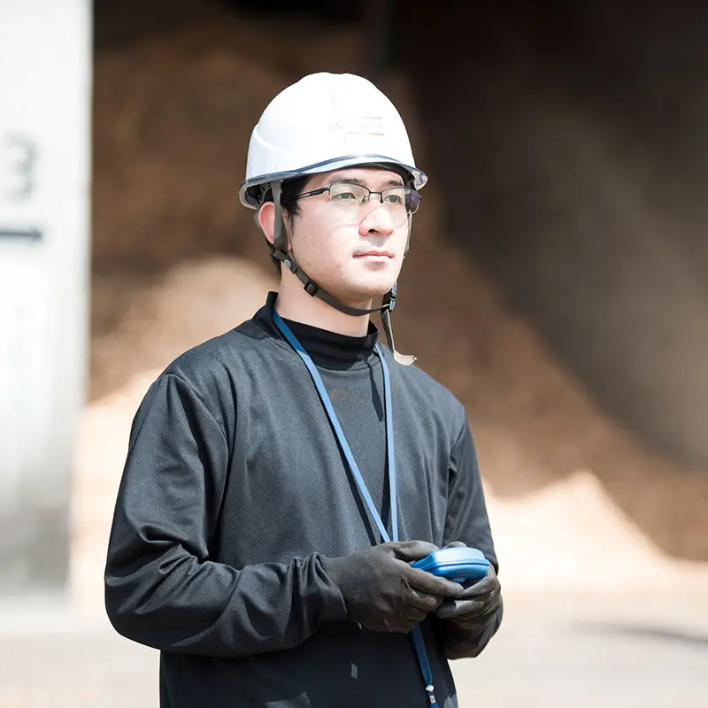 今後、ますます燃料用木質チップの需要は高まると思います。八頭事業所では、製造の体制は既に整っていますが、高まる需要に対応するためには原料を増やす努力が必要となります。木を伐採し、山から運んでくる作業は、経験と高い技術を要します。当社で培ってきた経験や技術を、外国人の技能実習生をはじめ新たな担い手へと確実につなげ、地域の健やかな森林運営につなげたいです。